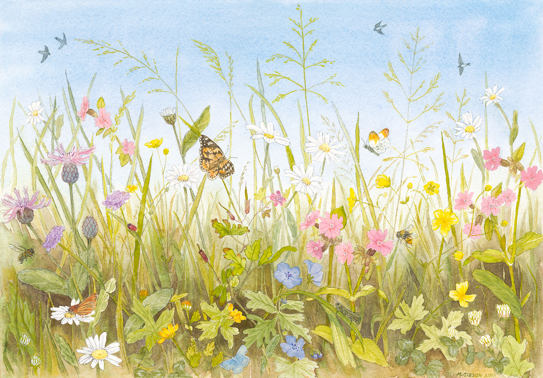 ‘Memory of a meadow’. Original water colour and gouache on paper. Size 42 x 29cms. Unframed £195.