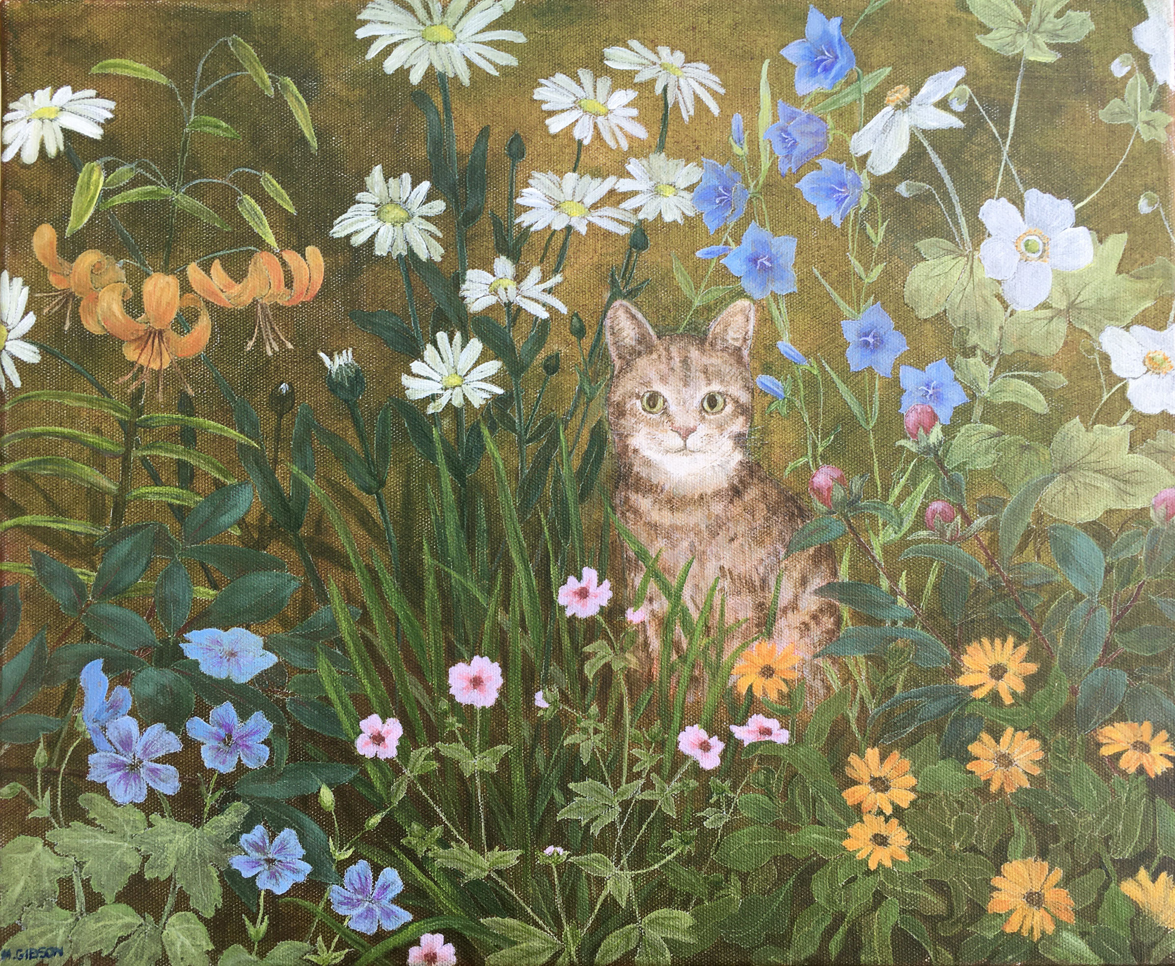 ‘Charlie hiding’. Original oil on canvas. Size W46 x H38cms. Including wooden frame, £295.
