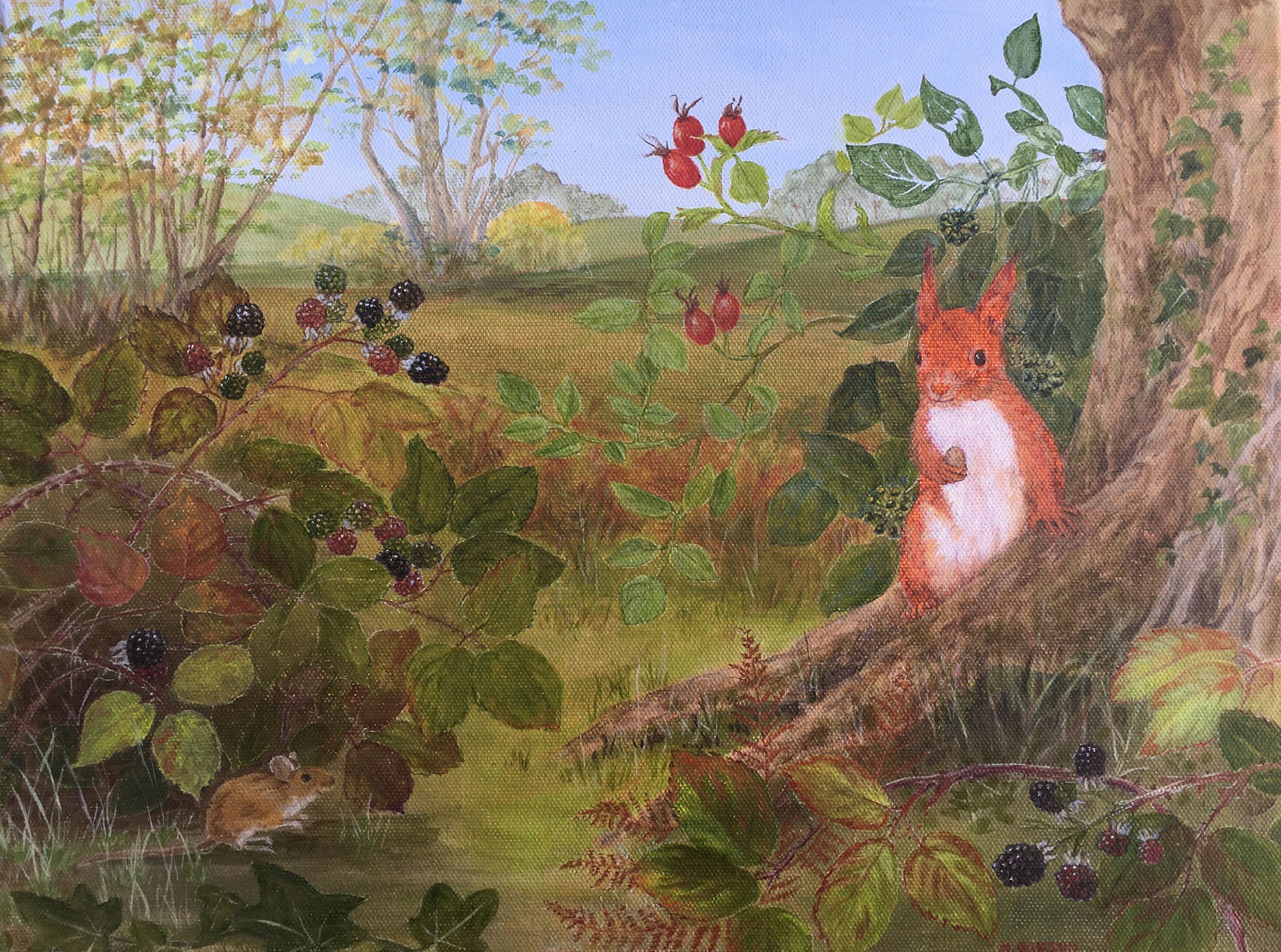 ‘Autumn fruits’. Original water colour and gouache on paper. Size 42 x 30cms. Unframed £195.