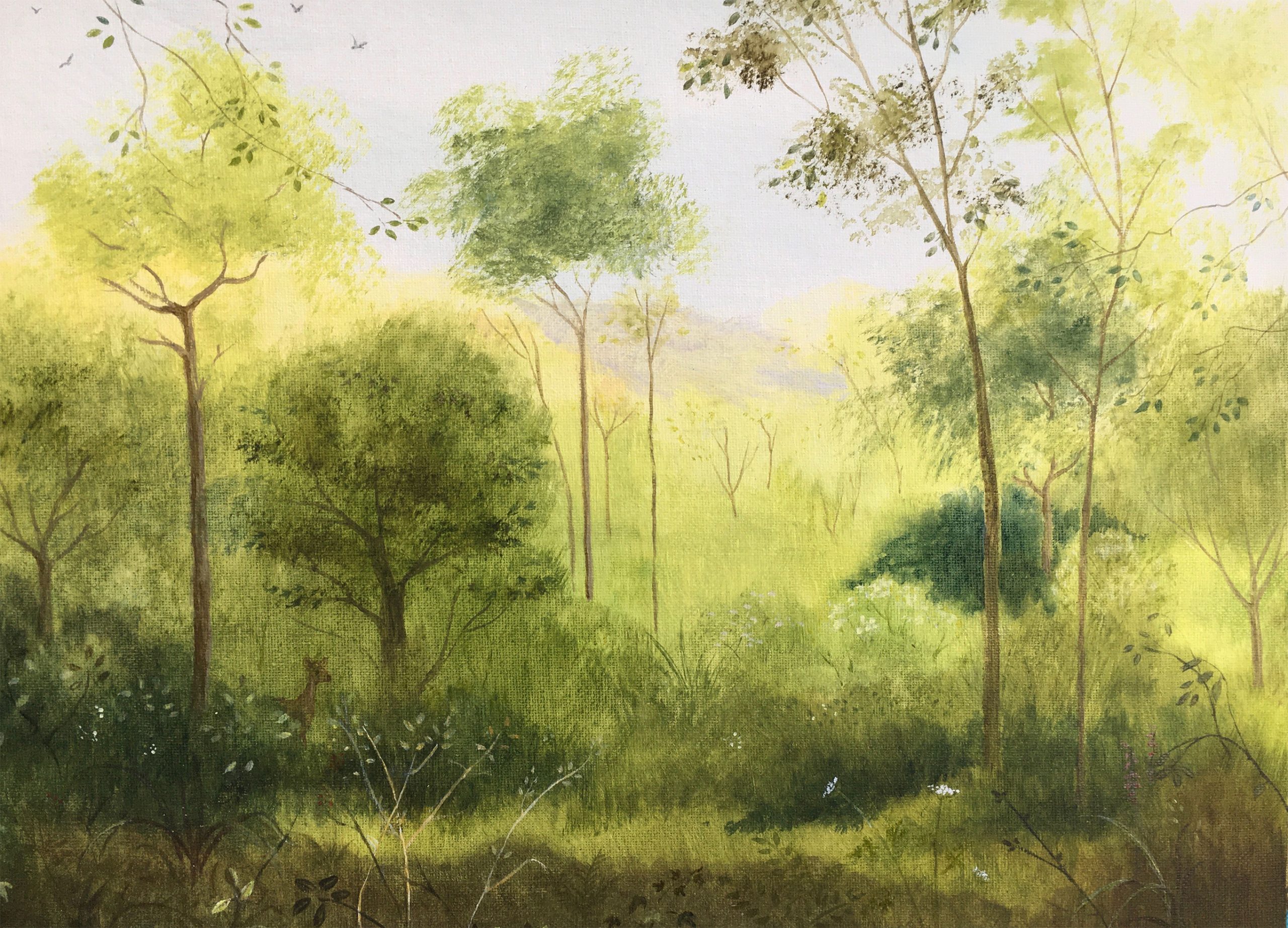 ‘Edge of the wood’. Original oil on canvas. Size W40 x H30cms. Including wooden frame, £245.