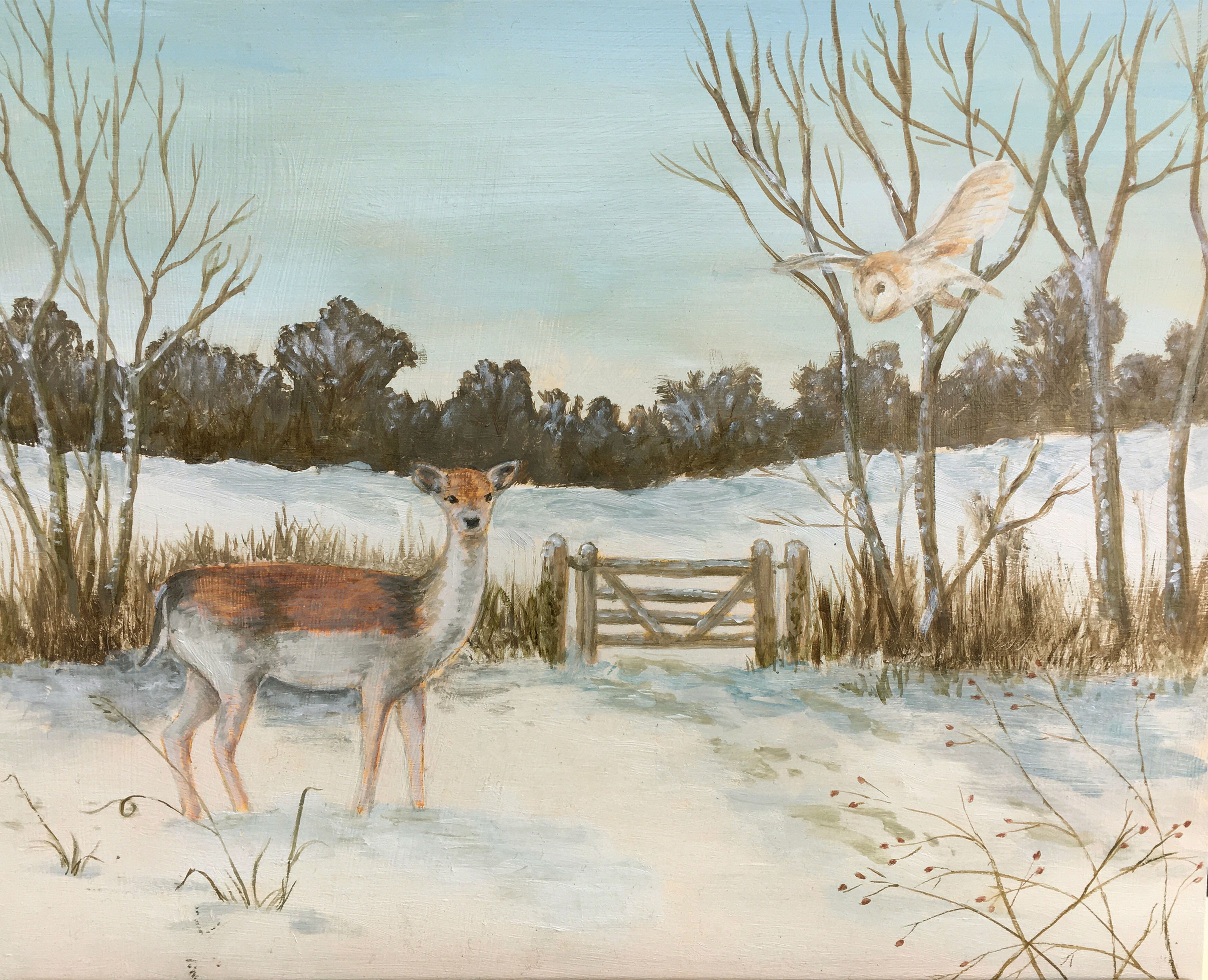 ‘Winter encounter’. Original acrylic on board. Size W30 x H24cms. Unframed £195.